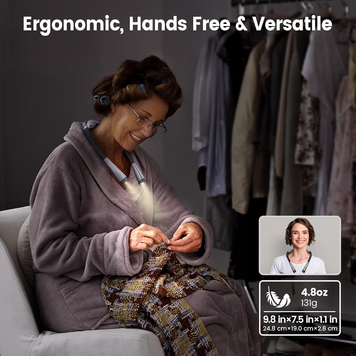 Book Light, 3-Color & 6-Brightness Reading Light, Bendable Neck Light, 80-Hr Lasting Rechargeable Lamp, Perfect Book Light for Reading in Bed, Knitting, Camping, Repairing, Book Lovers Gifts