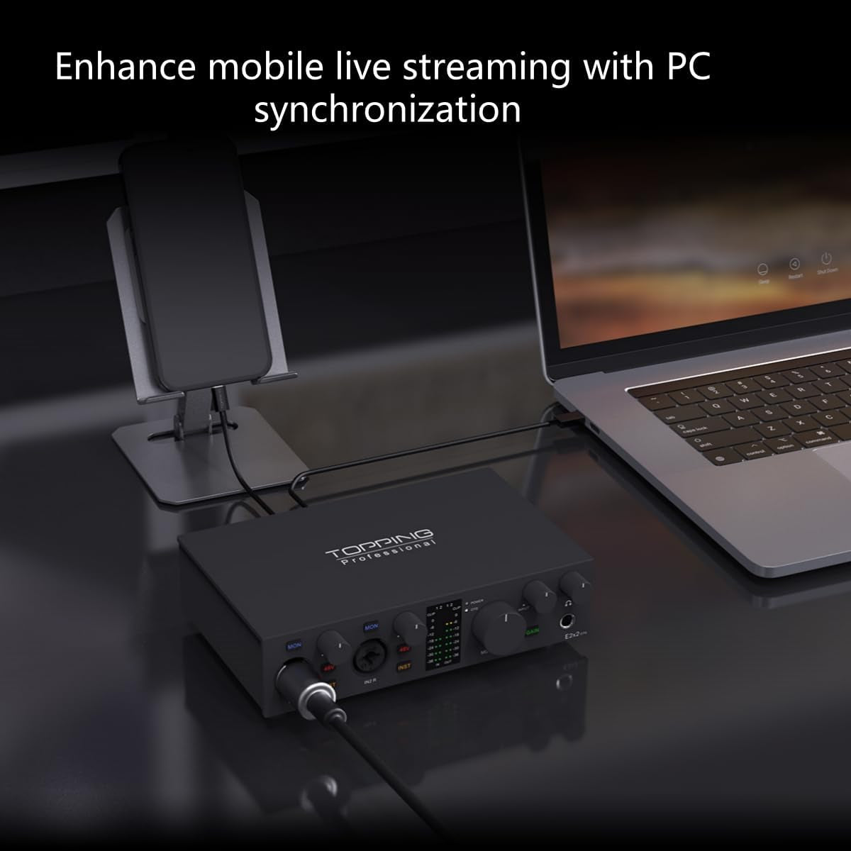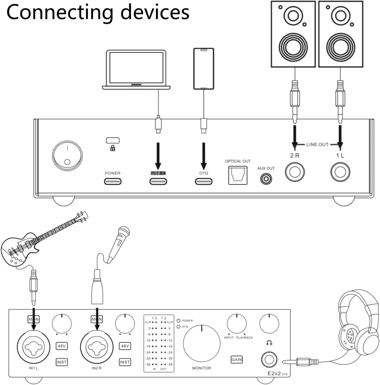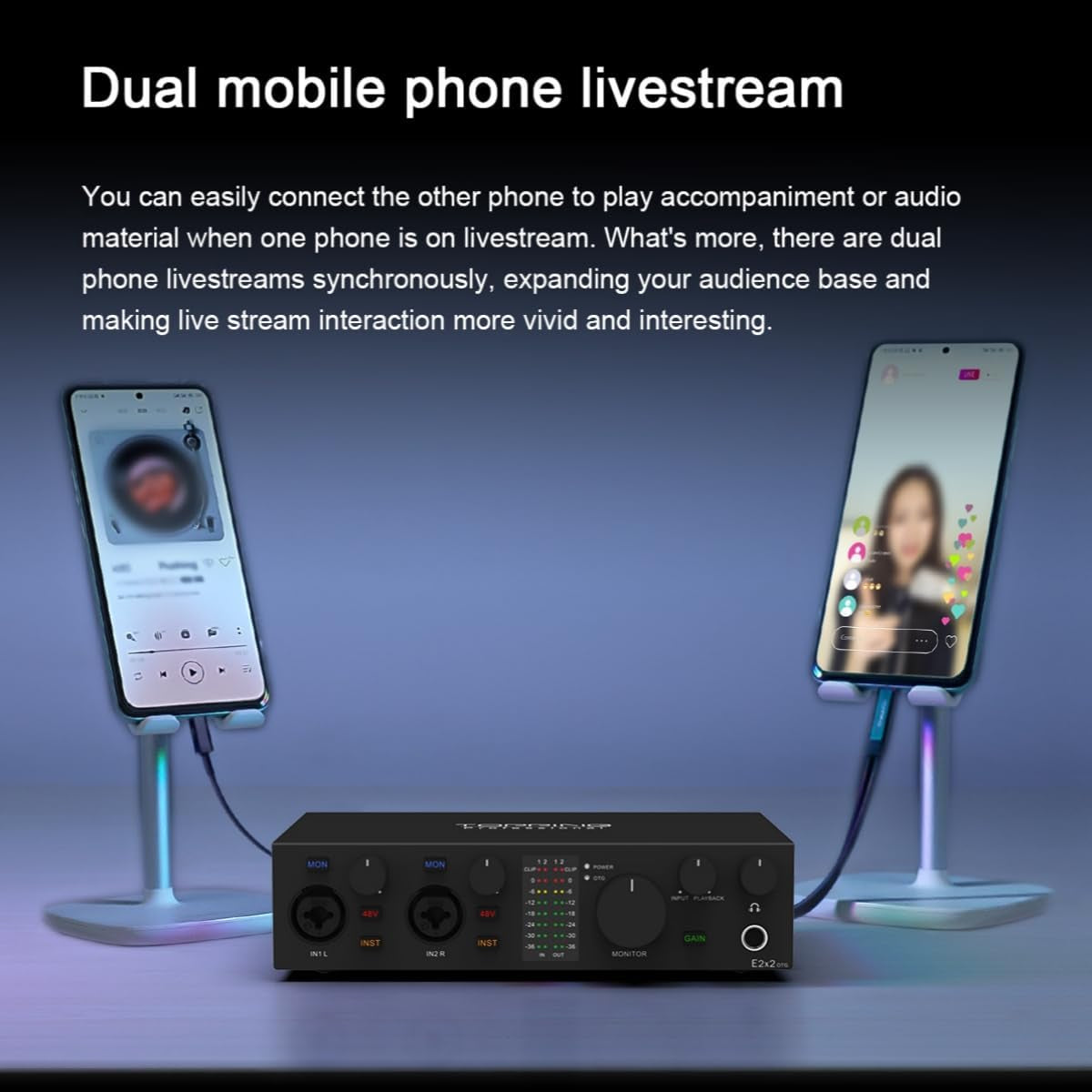 E2X2 OTG USB Audio Interface - Ultra-Linear Preamp & Powerful Headphone Amp,Optical Output, Dual Mobile Streaming, Zero-Latency, 192Khz/24Bit Recording, Pc/Mobile Compatible (Black)