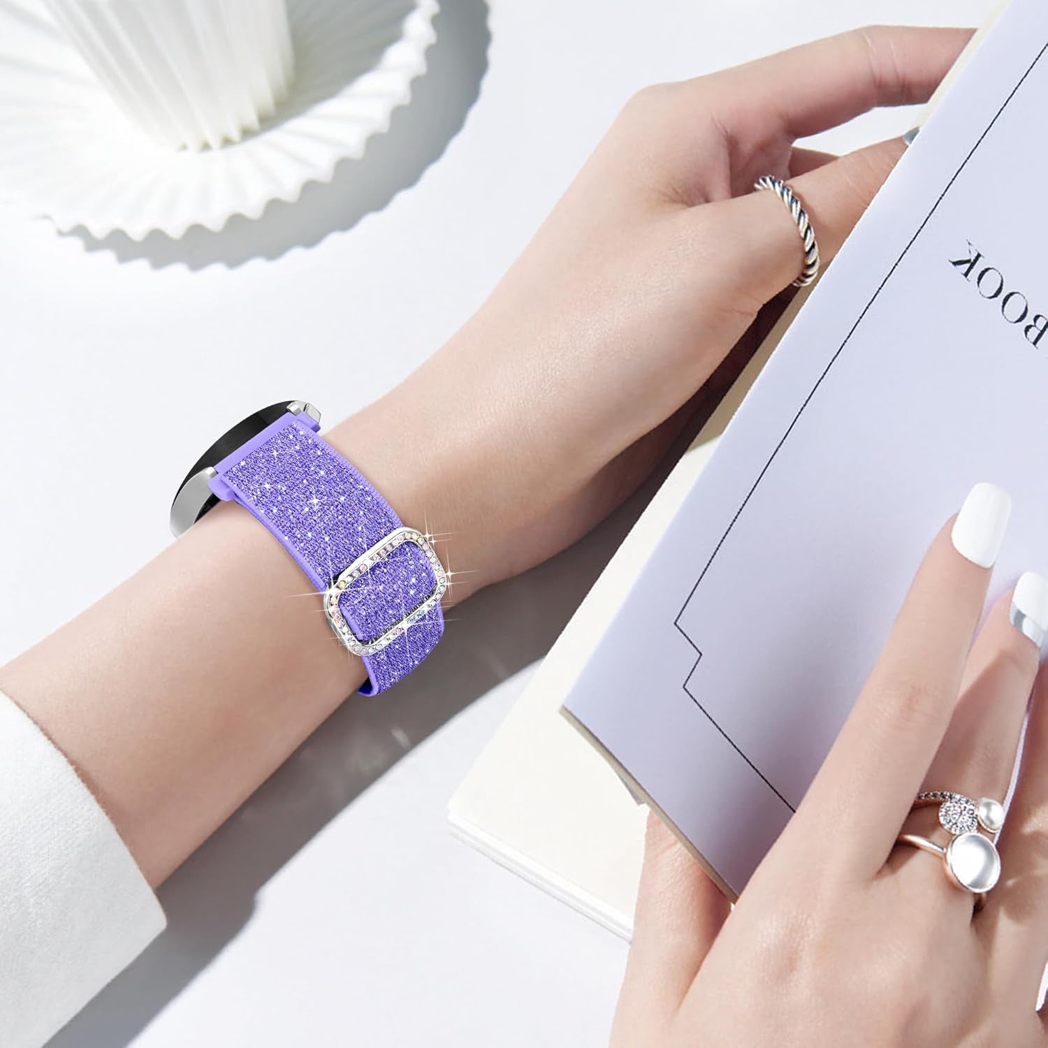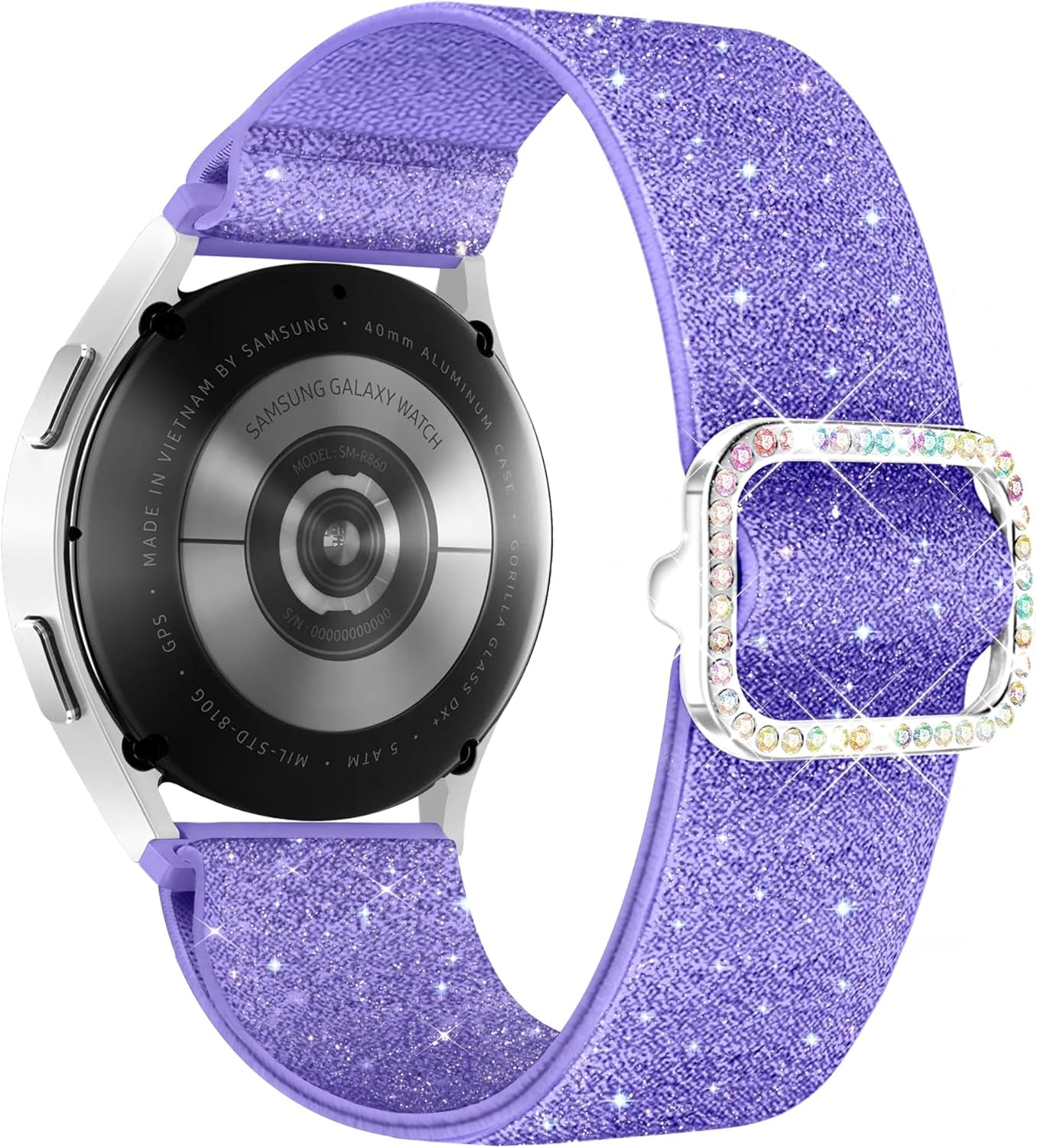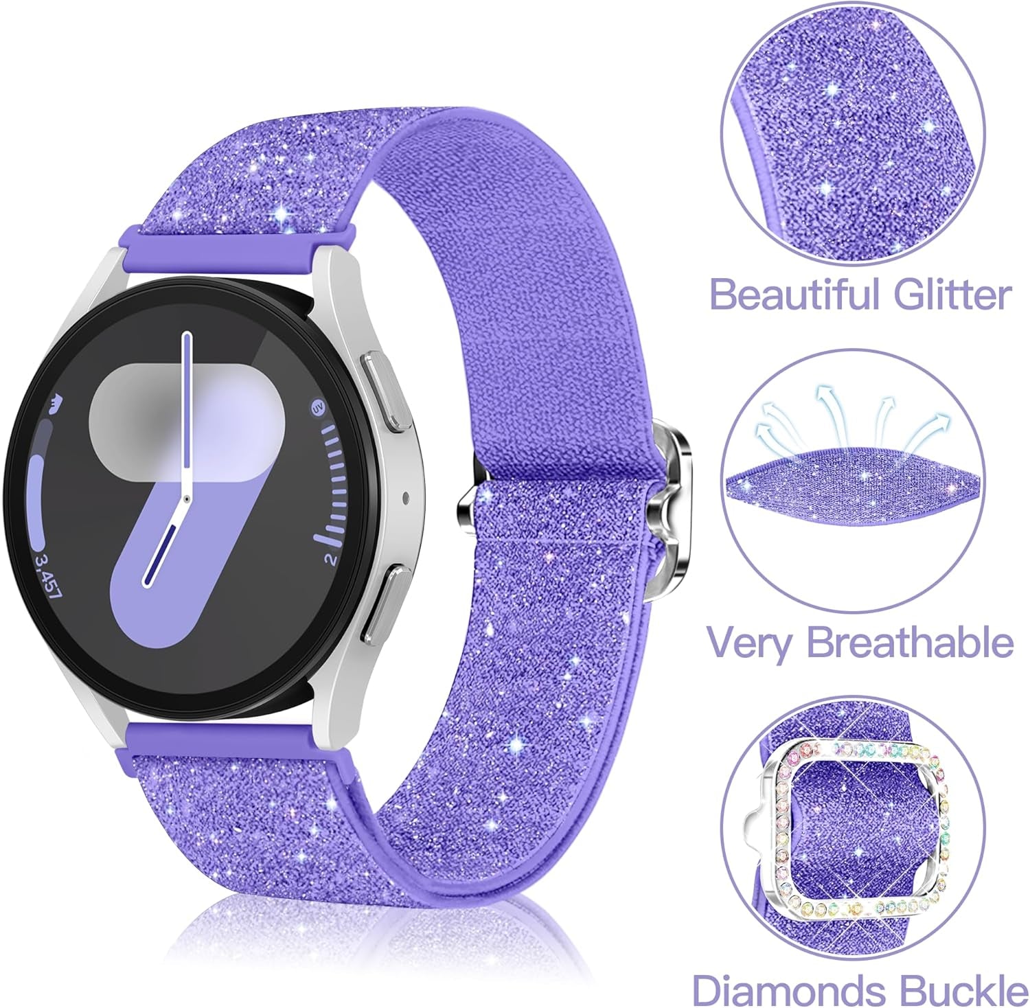 Galaxy Watch 7 6 5 4 FE 40Mm 44Mm Bands for Samsung Watch Bands, 20Mm Watch Band Women Bling Sparkly Stretchy Nylon Galaxy Watch Bands for Samsung Watch Bands 6 4 Classic/5 Pro/Active 2-Purple