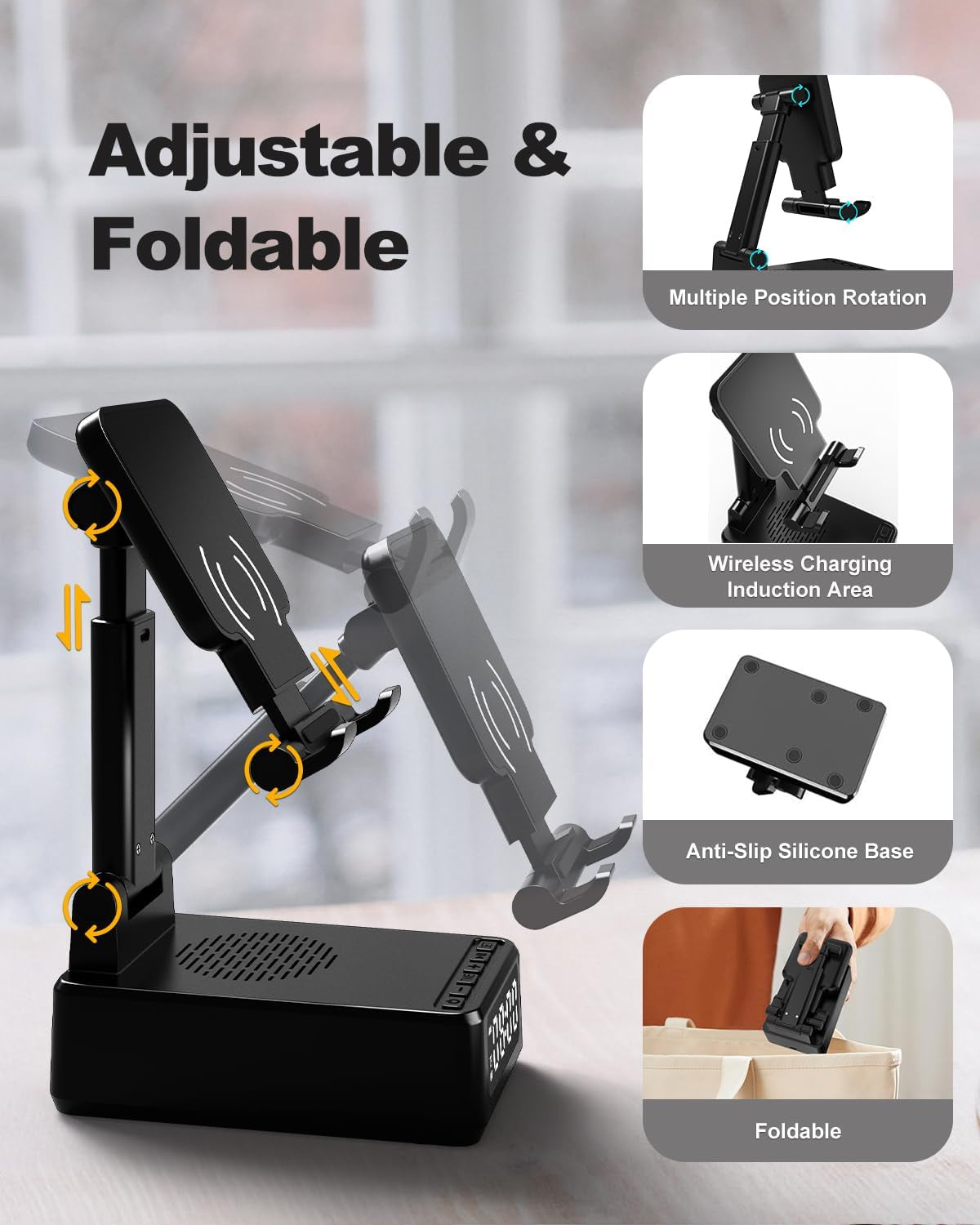 Gifts for Men Cell Phone Stand with Wireless Bluetooth Speaker and Wireless Charger, Phone Charger Stand with Digital Alarm Clock for Iphone, Birthday Gifts for Men,Boyfriend,Dad,Women,Christmas
