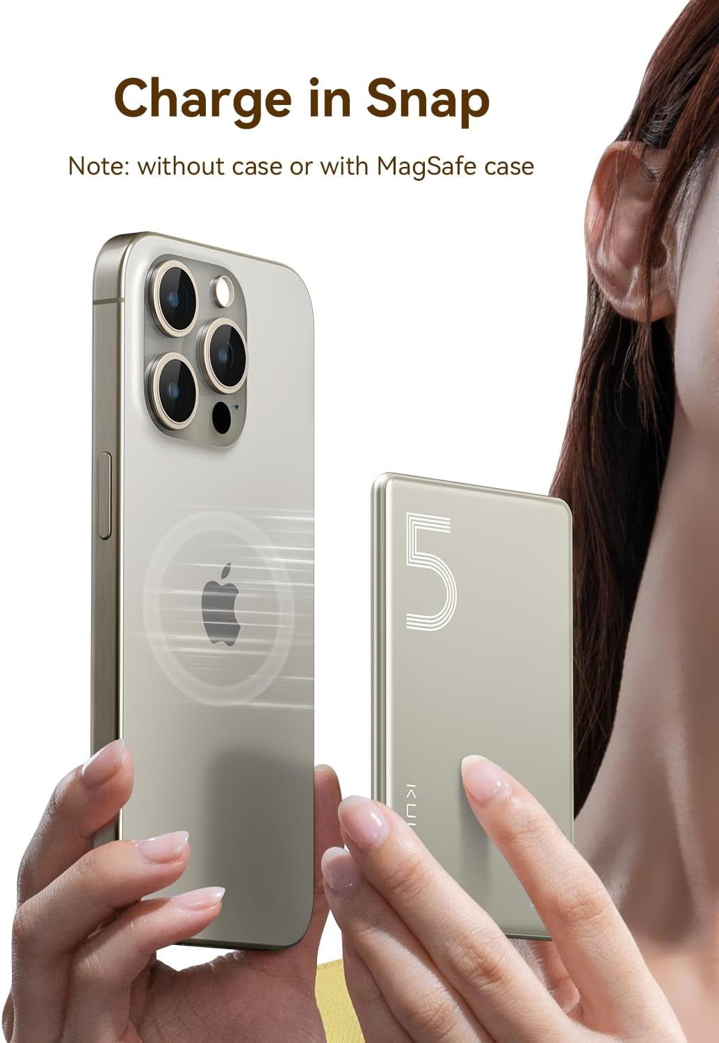 Magsafe Battery Pack 5000Mah Slim Magsafe Portable Charger 0.28In Magnetic Wireless Apple Portable Charger 20W USB-C Power Delivery Power Bank for Iphone 15/14/13/12 Serie, Titanium