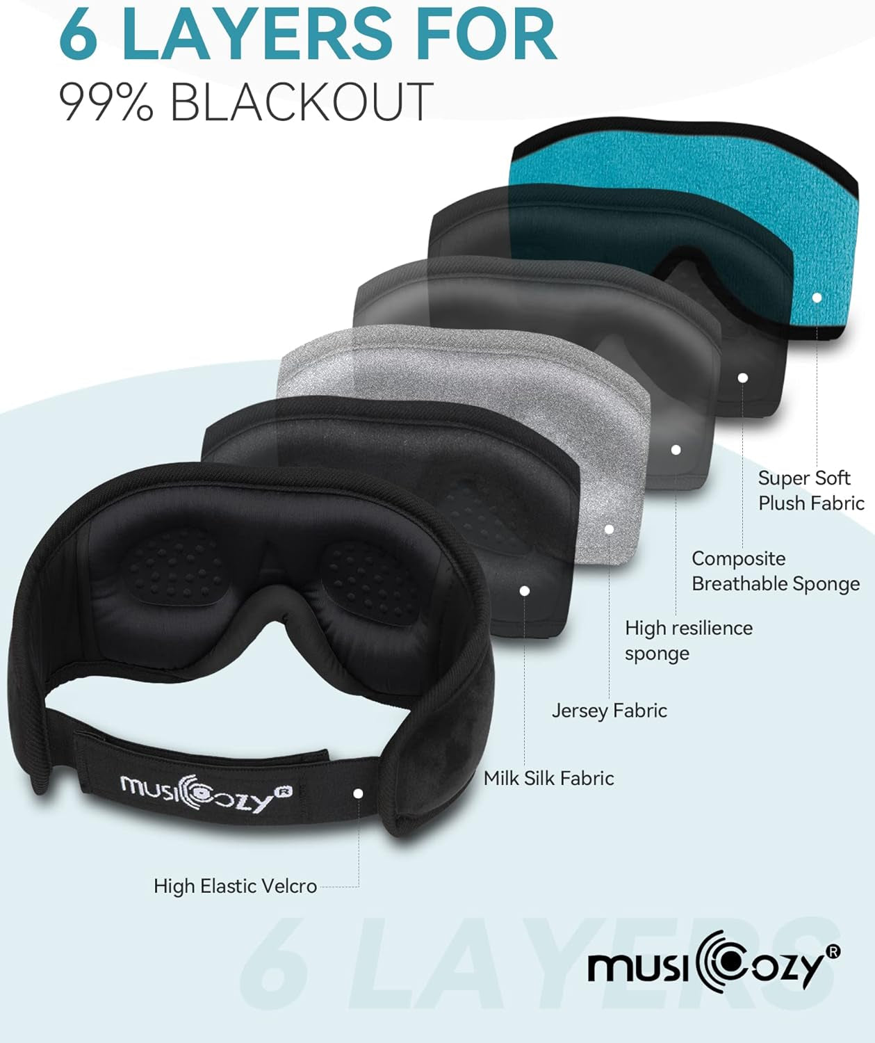 Sleep Headphones 3D Bluetooth 5.2 Headband Sleep Mask, Wireless Sleeping Headphones Music Earbuds Eye Mask for Side Sleepers Travel with Speakers Cool Gadgets Gifts
